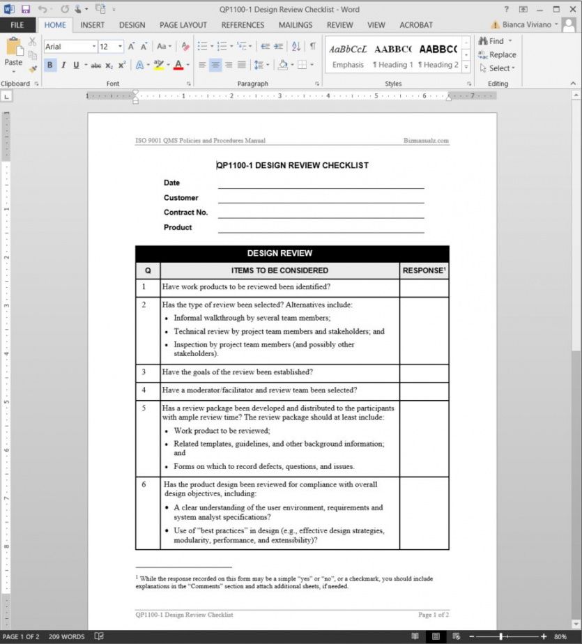 Free Design Review Checklist Iso Template Technical Che…